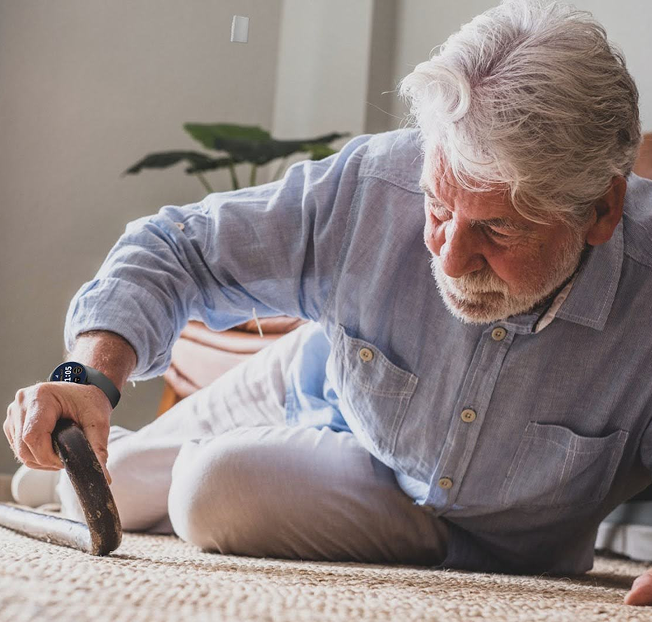 That is the peace of mind for family members in our smartwatch specifically designed for older adult lifestyles. Once the smartwatch asks him on the watch screen if he has fallen and he does not respond, the SOS calls you and texts the rest of the care team to help. This saves hours of a loved one lying on the floor without help which endangers their lives.